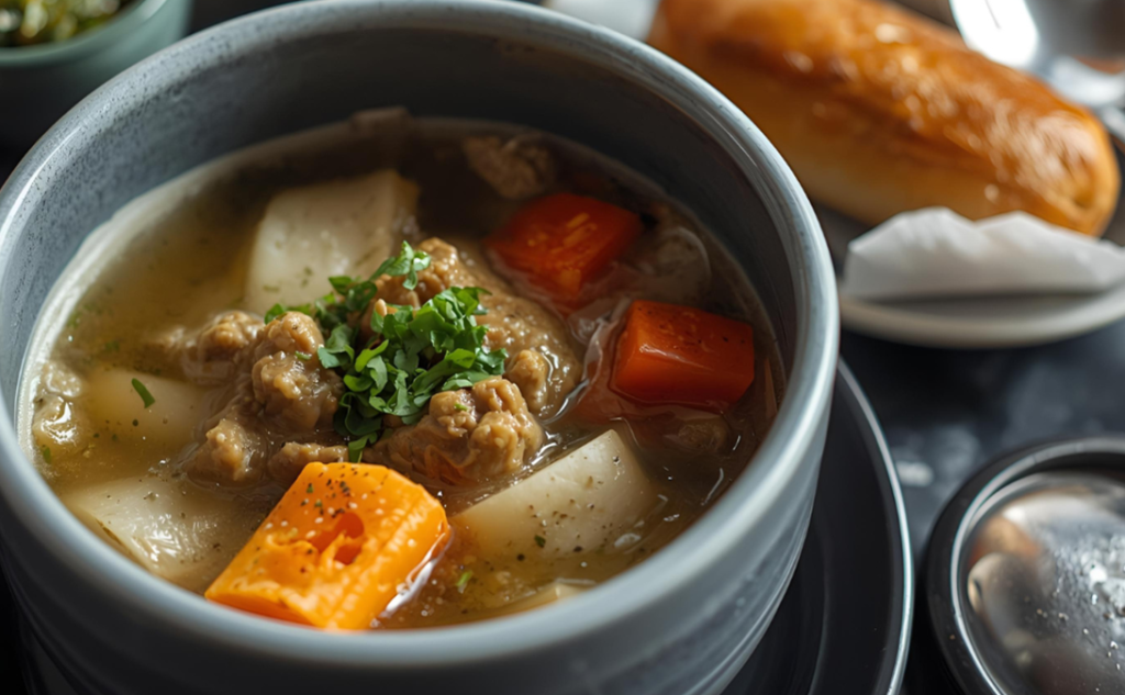 アニメ中では、1話内で出てきた食パンやオニオンスープを添えています。