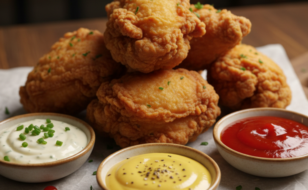 ロックバードのフライドチキン3種のソース添え(ヤンニョムソース・ハニーマスタードソース・タルタルソース)